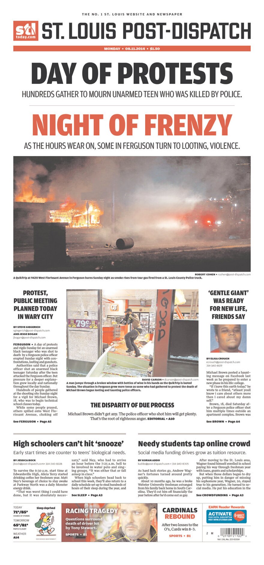 The paper’s award cited the power of the images in conveying the “despair and anger” in Ferguson.