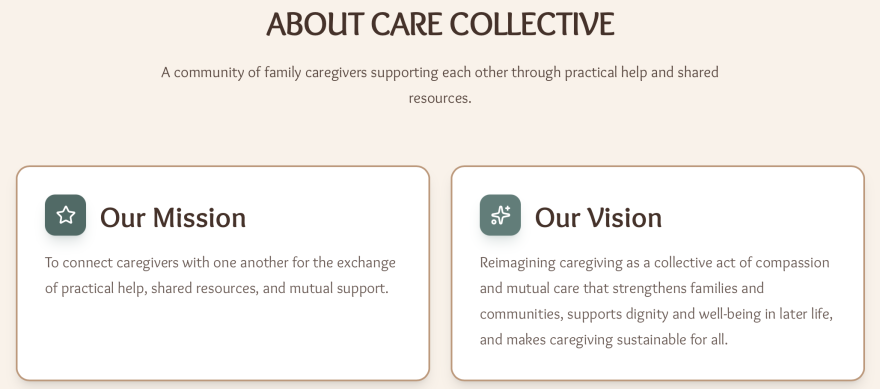 You have to be a caregiver to join the CARE Collective. It's not for volunteers because it's not meant to be a charity. It's meant to be mutual exchange and kind of empowering, you know?