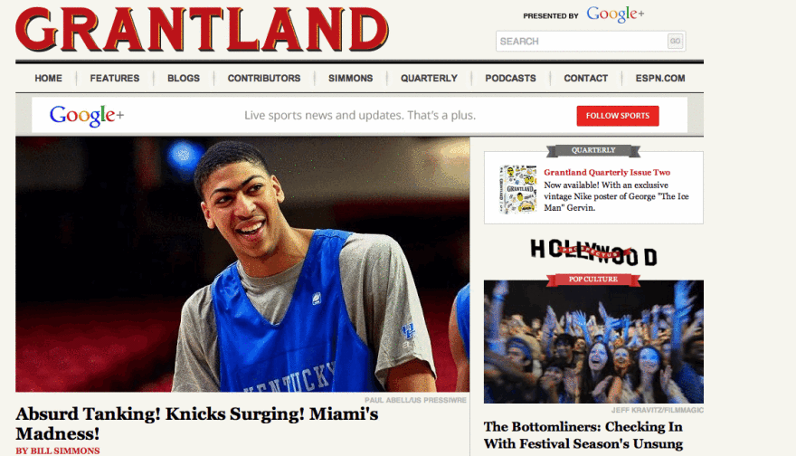 ESPN: “Grantland to suspend publishing, ESPN says in statement”